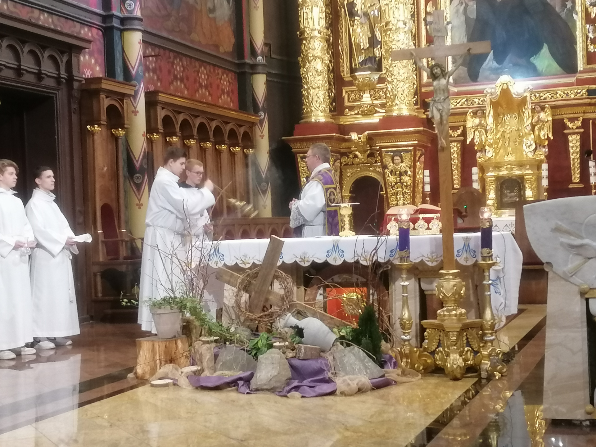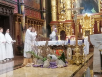 Podczas sobotniego spotkania ks Łukasz Tkaczyk szczegółowo zapoznał uczestników kursu z celebracjami Świętego Triduum Paschalnego. Zostali oni przgotowani, aby w swoich parafiach pomagać kapłanom i kierować akcją liturgoczną w czasie najwaźniejszych dni roku liturgicznego. O godzinie 12:00 wszyscy uczestniczyli w uroczystej mszy świętej po łacinie, która była sprawowana w Bazylice Katedralnej w Sosnowcu. Po przerwie obiadowej miało miejsce spotkanie z kapelanem księdza biskupa - ks. Pawłem Spronclem, który poprowadził zajęcia na temat asysty liturgicznej podczas liturgii sprawowanej przez biskupa. II część kursu zakończyły uroczyste NIeszpory.